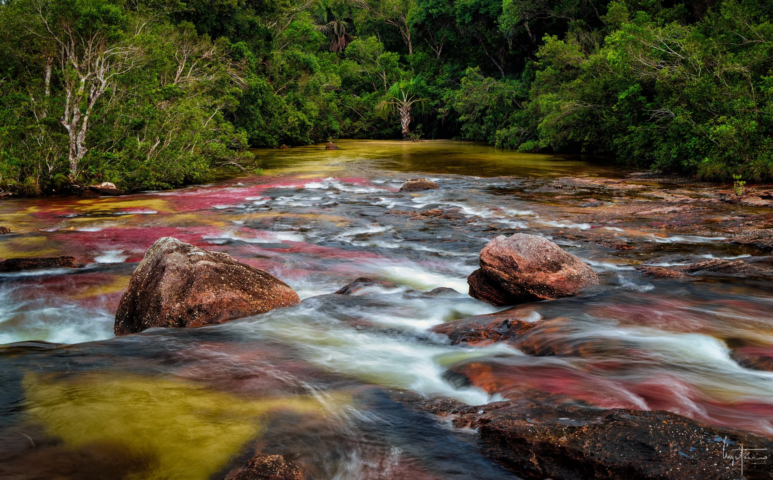 •Caño Cristales, conocido como el "Río de los Cinco Colores" o "El arcoíris que se derritió", es un destino extraordinario para un viaje fotográfico. Ubicado en la Serranía de la Macarena en Colombia, este río ofrece un espectáculo visual único gracias a la presencia de la planta acuática Macarenia clavigera, que le da sus vibrantes colores..